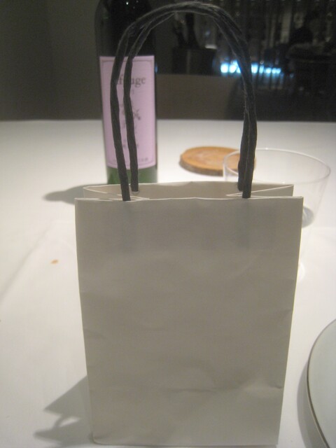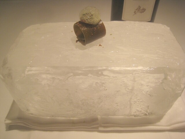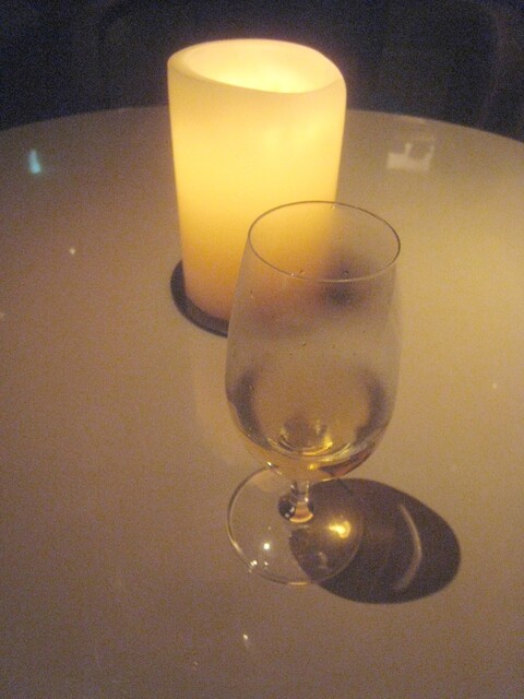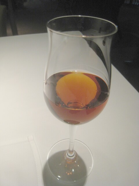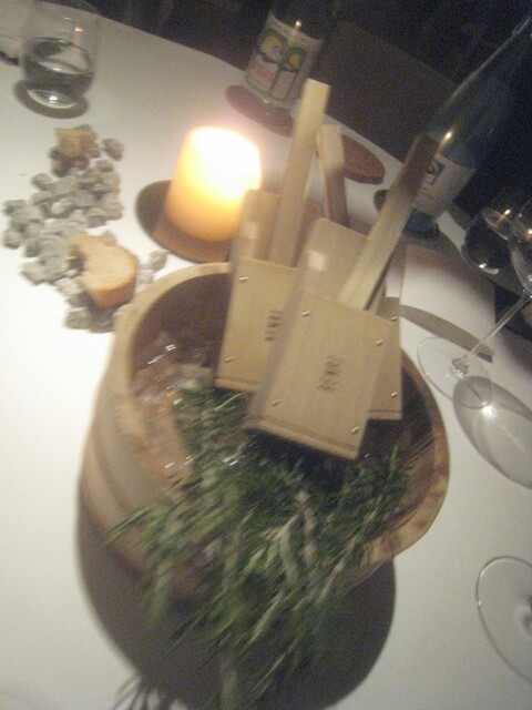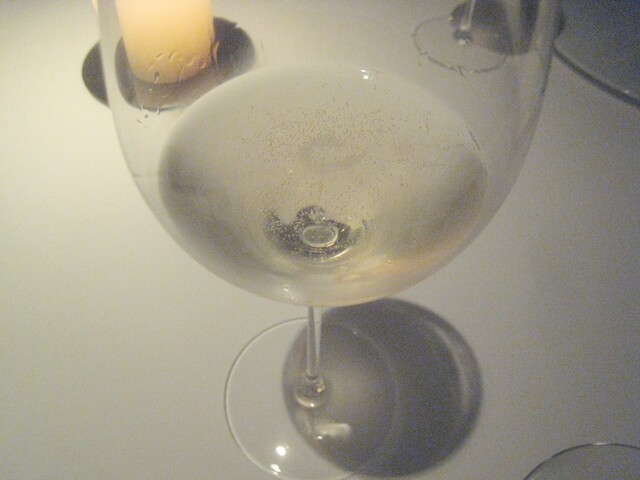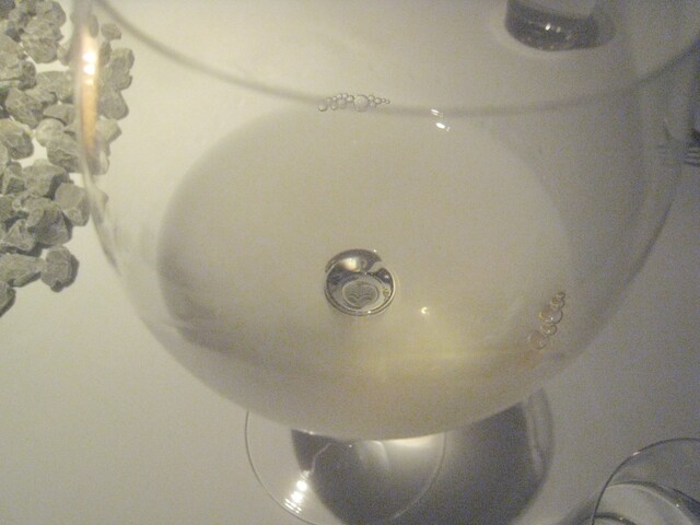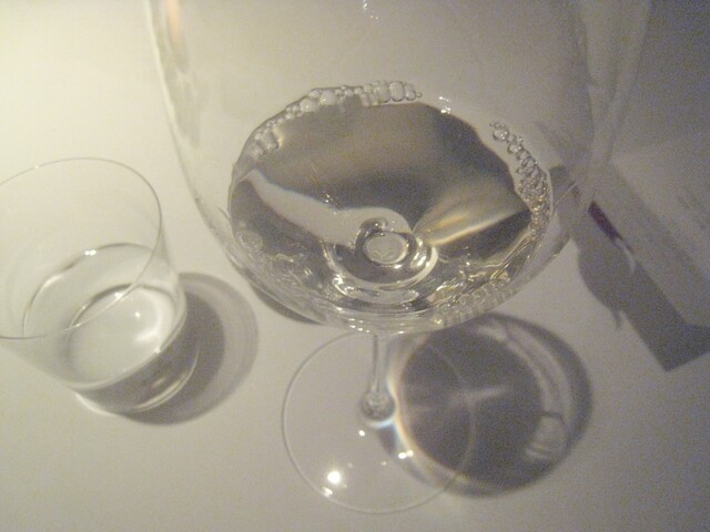 いきなりこんなものが。シャンパンは香りを拡げるために敢えて大きなグラスで、との