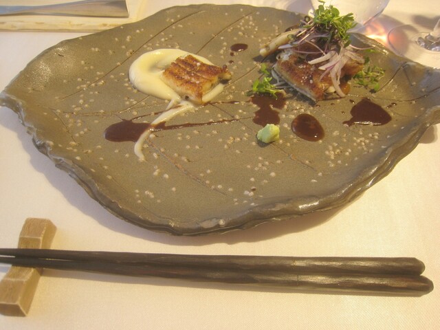 白焼き。これはスペシャリテだったらしい。根セロリピュレ、赤ワインソース、ワサビ。