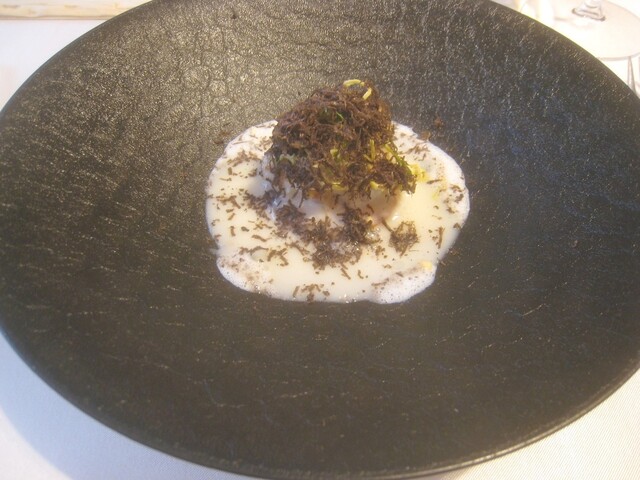 ホエー+出汁??後の方にはヨーグルトとも書いてある。泡はレモングラス。この皿も