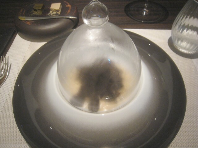 耐熱フィルム調理。見かけるのは高級店が多い気がするが演出の問題なのかも。
