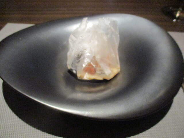 のはバルサミコと梅酢の人工イクラ?そしてこの器が純銀…いやまあ値段は店で聞いて
