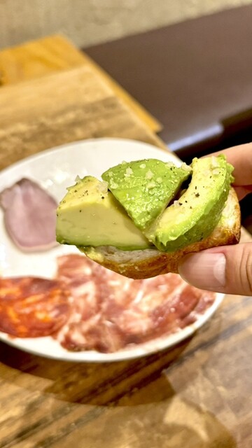 森のバターと呼ばれる濃厚なアボカドをたっぷりバケットに乗せバージンオイルと塩、胡椒でシンプルに仕上げ✨ 大ぶりでクリーミーなアボカドにカリッと弾ける粗塩の食感がアクセントに˚✧₊⁎⭐︎