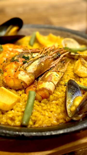 魚介たっぷりのパエージャは、海老/ムール貝/あさりなど6種類の魚介の旨味をぎゅっと閉じ込めた一番人気の一皿✨魚介の出汁をたっぷり吸いこんだお米は、芯をほんのり残したアルデンテ仕立てで、パエリアならではの食感が楽しめます✨
