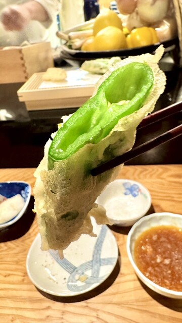 キスの天婦羅は、上品で淡白な白身の旨味とカラッと揚がった衣のサクサクとした食感✨塩でも天汁でも美味しい♡