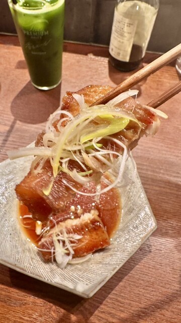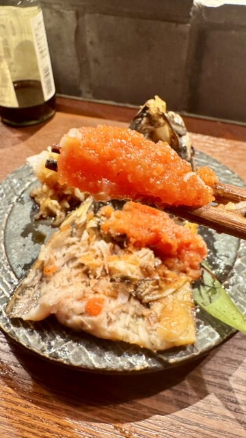 脂がしっかり乗った鯖の上に、こんもり盛られた明太子が鮮やかに映える✨炙られた香ばしさに鯖の旨味と明太子のピリ辛•粗めの大根おろしが合わさり、相性抜群でクセになる美味しさ✨