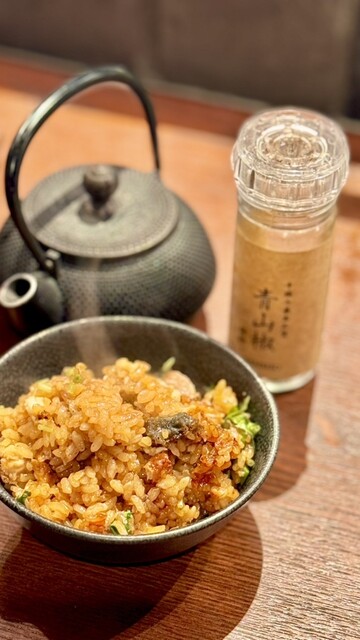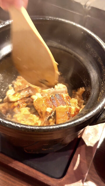 お店の方が炊き上がった米の上の鰻に炭をジュッと当てて焼き目を付け、そこから混ぜてくれるライブ感✨その瞬間に広がる香ばしさがたまらない土鍋ご飯✨まずは混ぜてそのまま、青山椒や三つ葉を添えるとさらに風味豊かに☘️✨おかわりは出汁を注いで茶漬けに✨炭の香りと鰻の旨味がふわっと☺️〆にぴったりの贅沢な一品。
