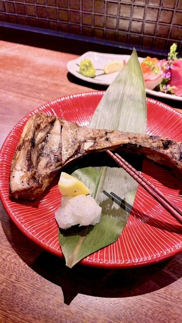 焼き上がりに時間がかかるため最初に注文。目の前で豪快に焼き上げられる臨場感も魅力。こんがりとした焼き色が美しく、香ばしい炭火の香りが立ち上る見た目は迫力満点‼︎ひと口頬張ると、表面は香ばしく中はしっとり。脂のりが良く、マグロの濃い旨みが口いっぱいに広がります。