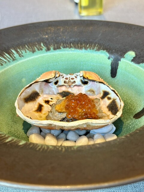 ずわい蟹の甲羅焼き雲丹といくらをのせて