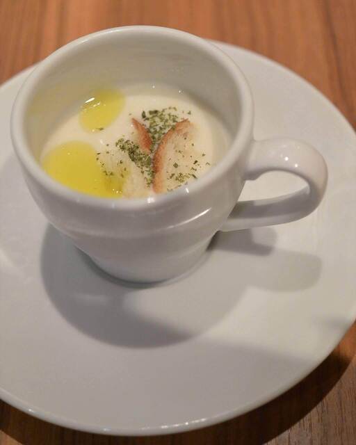 お通しとしての冷製スープです。(暑い時期だったからでしょうか?)