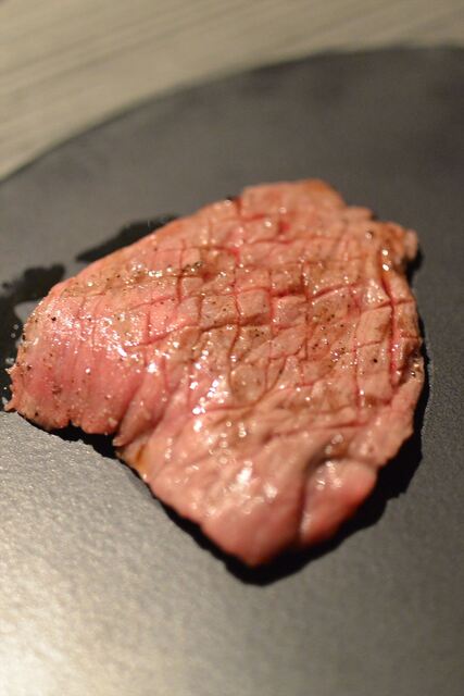 赤身肉ではありますが、上品な脂も感じます。2種類の塩もまた特徴的です。