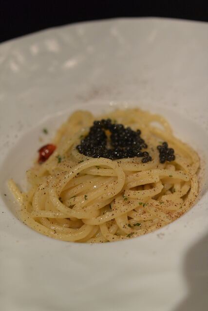 キャビアの映える贅沢なペペロンチーノです。ナムルも優しい味わいです。
