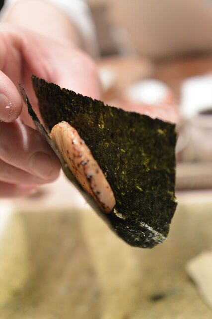 平貝の食感と醤油の香りと海苔の風味が一体になっています。