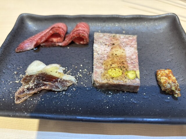 見た目にも鮮やかな前菜に始まり、レバー、ハツ、ウルテの低音調理をつまみ、パテとハムで気分が最高潮まで高まります。