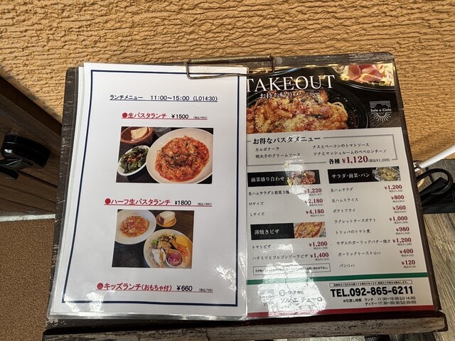 開店と同時に入店し、早速生パスタランチ(カルボナーラ、パンをガーリックトーストに変更)で1,630円税別となりました。