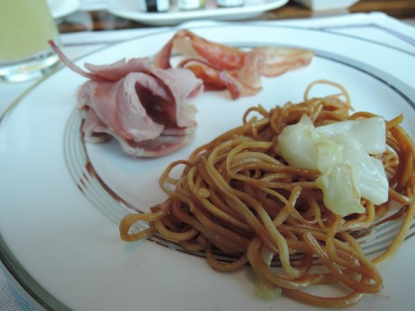 ブュッフェの料理はと言うと、サラダやパン・ハムはもちろん一風変わったやきそばも。