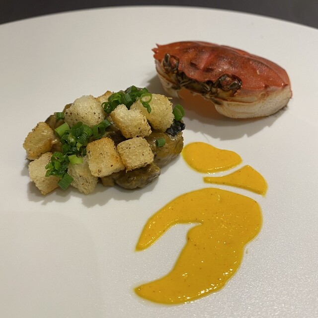 千葉の伊勢海老の塩麹マリネの生チョコタルト