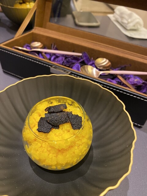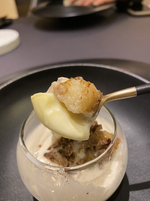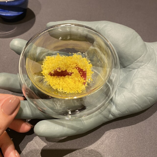 殻+ホワイトチョコ、頭出汁スープゼリー