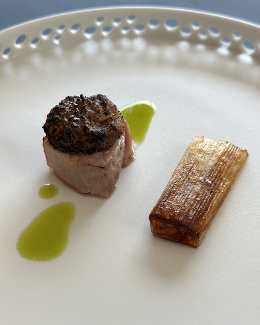 無花果の葉エキスオイル、鴨脂ネギソテー