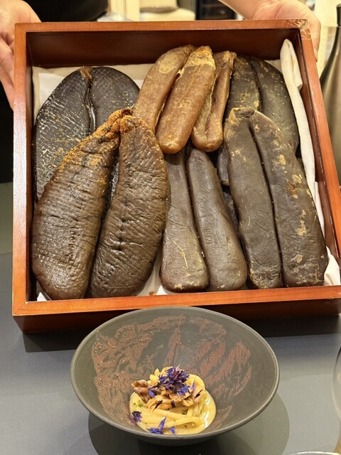 カラスミバター、焼き鯖、ヤマドリダケ