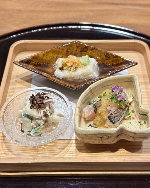 ◾︎ 前菜3種(焼き胡麻豆腐、白和え、サワラ)