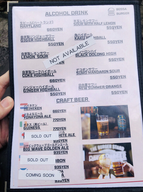 今回は店名を冠した全部乗せのボッサバーガーにする。ランチはドリンクが350円なので自家製ジンジャーエールにしてみる。女性のお客さんはアボガドチーズバーガーが人気のよう。