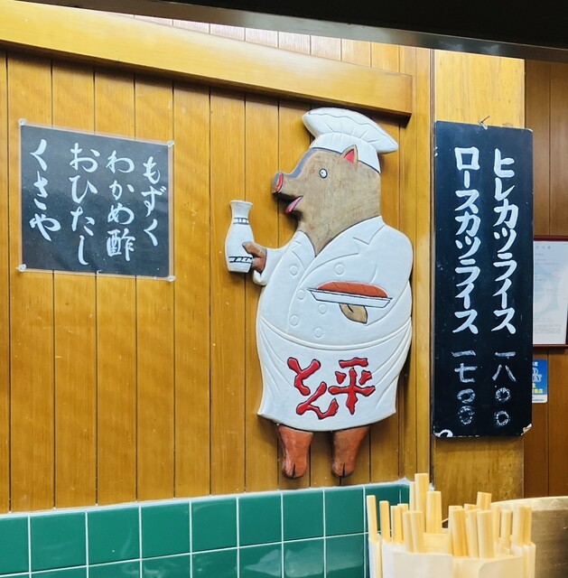 鶯谷駅南口から高架橋を渡って降りて、言問通りの手前にある創業70年以上の老舗とんかつ屋さん「とん平(とんぺい)」、ずっと気になっていて、平日の19時ごろに初訪問。