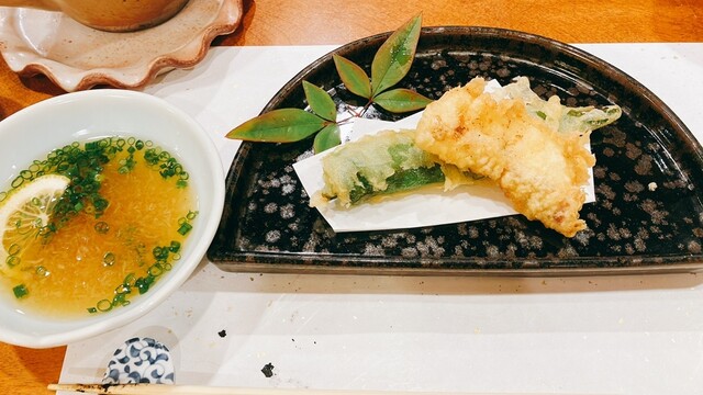 いとより、万願寺とうがらしの天ぷらと天つゆ