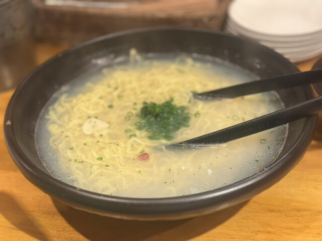 色々な貝料理を堪能して、最後は〆の麺を二人前平らげて腹パンパンw