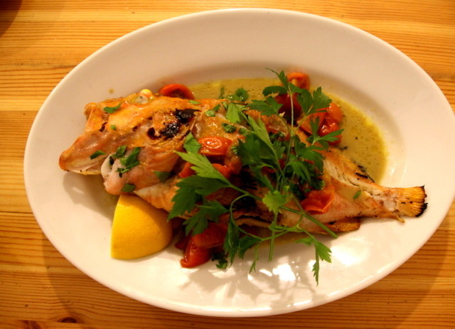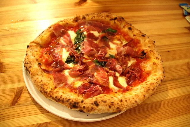 今回はピッツァ・メインを選択…ピッツァ:生ハム乗せマルゲリータ(+100円)メイン:カサゴのアクアパッツァ(+400円)本当は水牛のモッツレラマルゲリータが食べたかったのですが今日は水牛モッツレラが無いとの事(T_T)/~~~