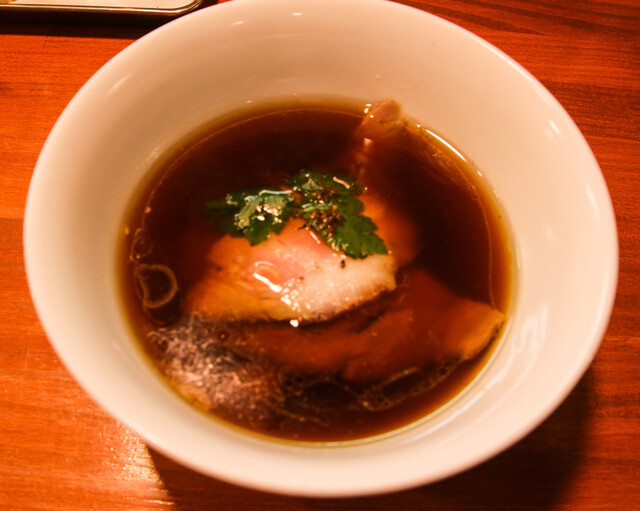 総評…鶏の質が良いのと丁寧な仕事で鶏って甘~い出汁が取れるんですんね♡とってもクリアなスープでした(*´ω`*)ですが、私としてはわさびで食べる麺が最高!!(≧◇≦)昆布のとろみとわさびの組み合わせは癖になりそうです☆全量で340g食べたのですが堅麺ですしチャーシューなども噛み応えが有りつるっとしていて食べやすく一気に完食したものの後からずっしり(;´Д`)夕食抜きに決定です(爆)店主様帰りには出てきてくださりお見送り♪質問にも丁寧な対応をしてくださいますし接客も素晴らしい!!評価が高い理由が分かりました(^_^)v