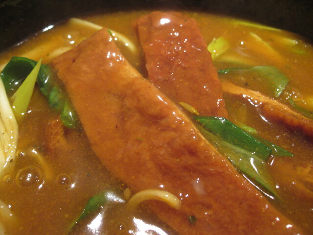 ・大きな刻みぎつね…カレーの辛さに負けない甘く炊かれています!!カレーの間に食べるといい感じ♪(*≧∀≦*)こんなに大きな刻みぎつねは初めてです!!(^o^)v