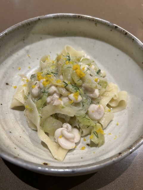 かぼちゃと海老にカスメリティというスパイスを合わせたスープは香り豊かで奥行きがあり、白子のパスタやアワビとなめこのパスタも、素材の個性を活かしつつバランスの取れた仕上がり。見た目にも楽しく、食べ進めるごとに発見があります。