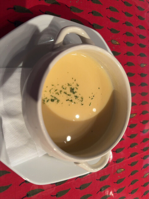 続いてスープ、当日のスープは人参のポタージュ、これも優しい甘さで美味しい♪