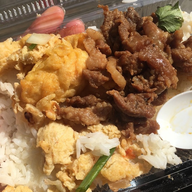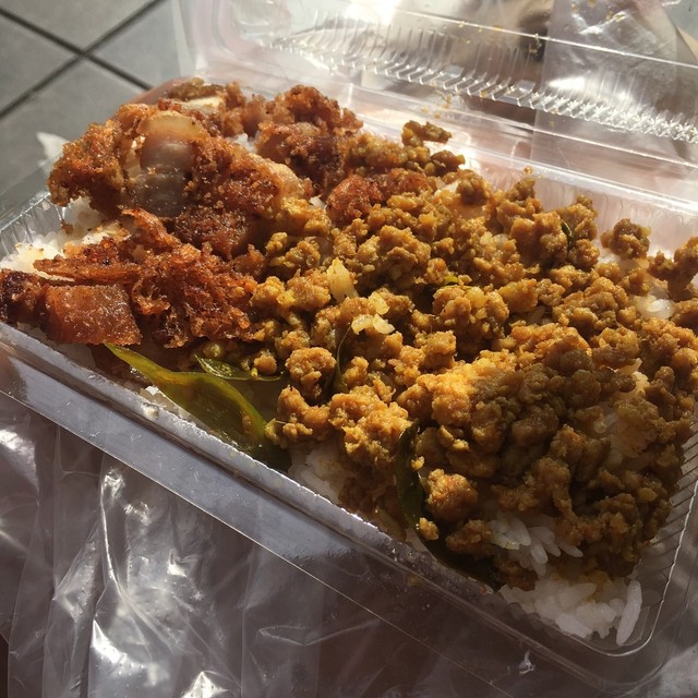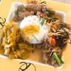 豚のせごはん。他にもお弁当としてタイ風キーマカレー、かに玉、牛のせごはんを食べた。