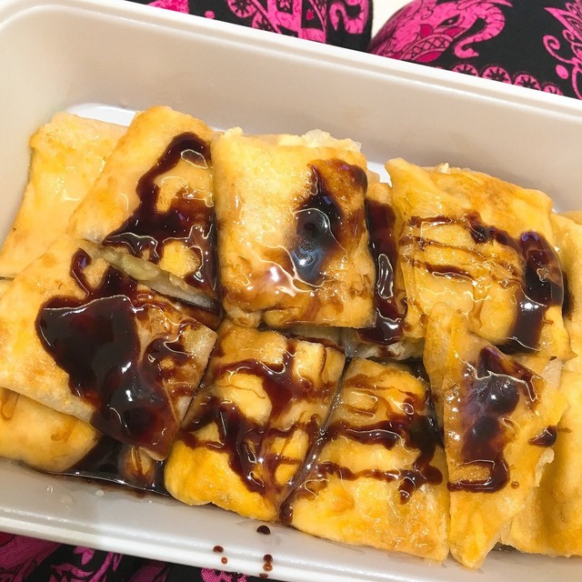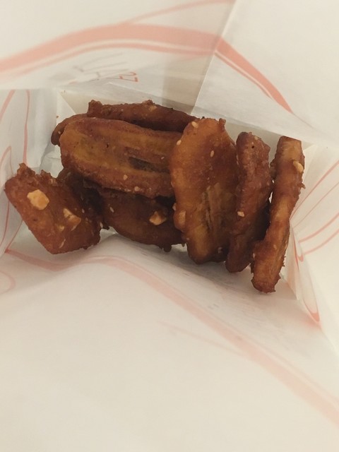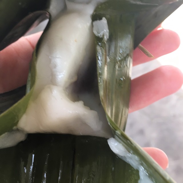屋台で購入。葉っぱに包まれていて、周りはふわふわしたココナッツミルク、中は甘く煮詰めた濃いココナッツ!