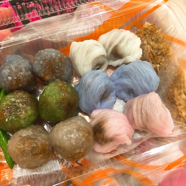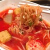 ピンクのセンミーを使用。味は春雨サラダ風。いろんな麺が並んでた!
