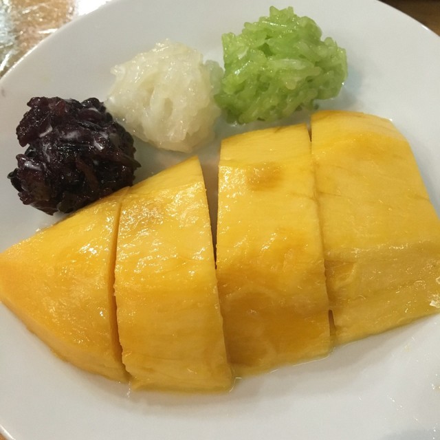 もち米のタイ米にたっぷりのココナッツソース、たっぷりのマンゴー!