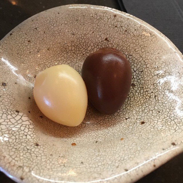 しめにチョコレートリゾットをいただきました。ごはんの上にチョコレートが乗っていて見た目はびっくり!