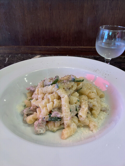 強すぎないけどまったりチーズの風味、サルシッチャの中のスパイスなのか更に足してるのか、ふわっとハーブが香る。サルシッチャの旨味、ちょうど良い塩味。めちゃ美味しい〜(*´∀`)