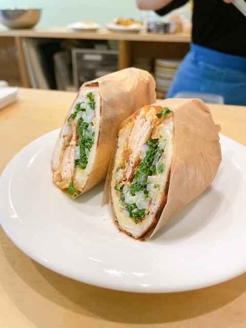 サクラマスサンドと出来立てズッキーニとチーズのフリッタータ❣️