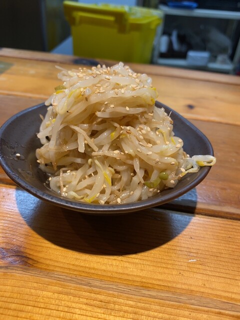 この年の最後の訪問はディナー。久しぶりに豚トロ定食1,000円をオーダー。もちろん味付けもやし二百円もセットで。豚トロはトロッぽい脂を感じるのだけど食感はサクサクとしたもの。不思議だなと以前から思っていたので、どの部位のものなのかをお聞きしたところ、首の部分とのこと。なるほどね〜。