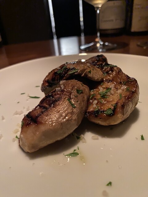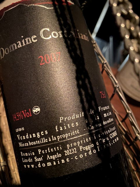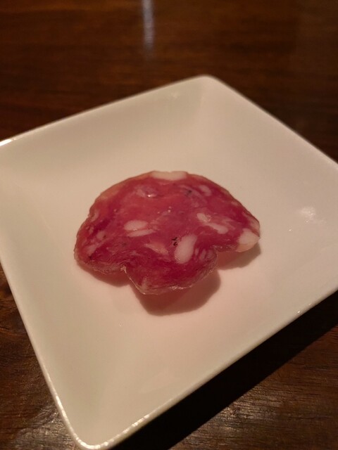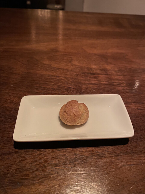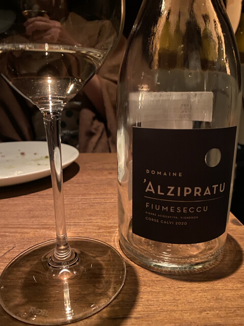 ワインはグラスで白を1杯(アルザス、ツイント・ウンブレヒトのミュスカ2019年)、その後にボトルで赤を1本。何を飲みたいか、自分の気持ちが定まらないと伝えて「何かおもしろそうなもの」をお願いしたところ、コルドリアーニというシチリアの生産者のパトリモニオ2007年。まったく知らなかった生産者のもの。若かりし頃はタニックでパワフルだったのだろうなと想像させる強い酒質だが、15年経過していい具合にこなれていた。こういう珍しいワインを出してくれるところがこちらのお店の面白さ。