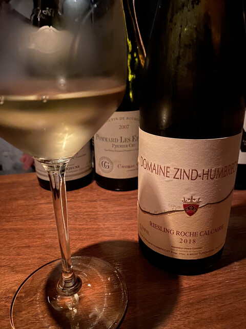 ボトルワインは「リースリングが飲みたい」と事前にお伝えしておいたところ、ツィント・フンブレヒトのヘレンヴェッグ・ド・テュルクハイムの2001年をご用意くださっていた。