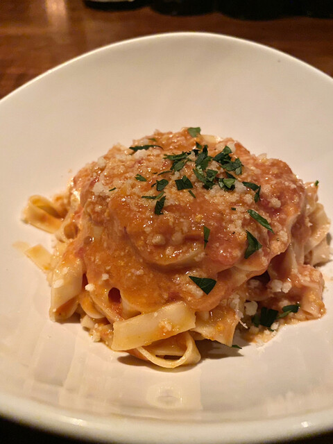 パスタの種類が豊富なのでパスタ好きな方にはオススメだ。シェフはほぼ毎日のようにお店でパスタを打っているそうだ。自分が好きなのは、薫香かおる牡蠣のパスタ、ジューシーに仕上げられた猪のラグーをトルテッリで包んだもの(イタリア版小籠包のような雰囲気だ)、鮎とフレッシュトマトのタリオリーニなど。また、タリアテッレが充実している。フレッシュ・ポルチーニのタリアテッレとか、穴子の赤ワイン煮と合わせたトマトソースのタリアテッレとかが印象に残る。