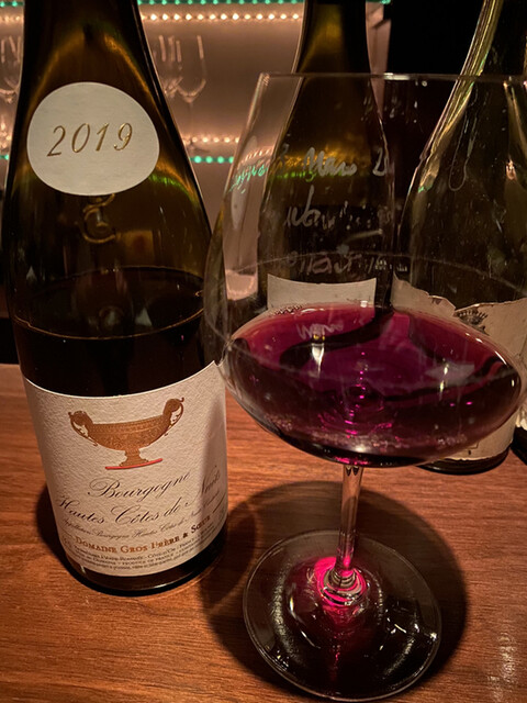 そして最後に赤ワインをグラスで一杯。これまた知らない作り手、ドメーヌ・ロランのショレイ・レ・ボーヌ2019年。ボトルの写真を撮影するときにフラッシュ焚いてしまい、酔っ払い客は本当に迷惑だろうなぁと思い、30分ほどでそそくさとお店を後にし、大人しく帰宅いたしました。