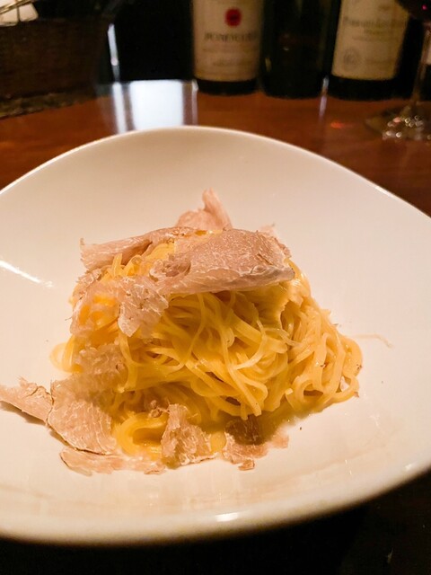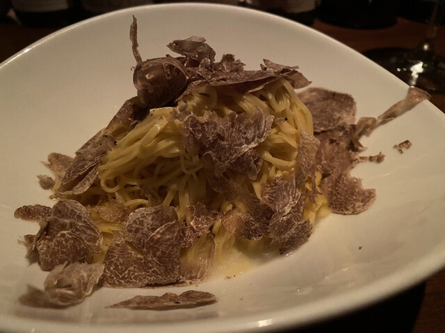 タヤリンxアルバ産白トリュフの鉄板コンビを楽しむべく、深夜に1名にて訪問。価格の高騰が著しいようだが、お値段はともかく、この日のトリュフの香りの凄さは凄まじかった。