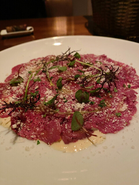またもや燻製の香る牡蠣のタリアテッレ(自分のお気に入り)をいただき、グラスでシャンパン、白ワイン、赤ワインを一杯づつ頂いた。