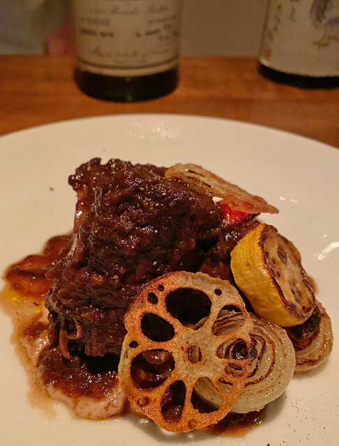 他方、お肉料理はワインバーとは思えない充実度。とりわけジビエがいい。内臓などを裏漉ししたブランデーベースのソースなど、多少しっかりめのお味で頂くことが多い。