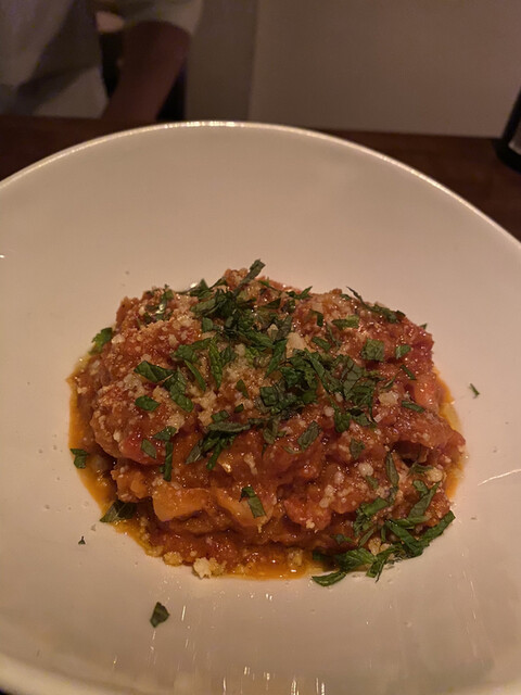 パスタの種類が豊富なのでパスタ好きな方にはオススメだ。自分が好きなのは、薫香かおる牡蠣のパスタ、ジューシーに仕上げられた猪のラグーをトルテッリで包んだもの(イタリア版小籠包のような雰囲気だ)など。また、タリアテッレが充実している。フレッシュ・ポルチーニのタリアテッレとか、穴子の赤ワイン煮と合わせたトマトソースのタリアテッレとかが印象に残る。