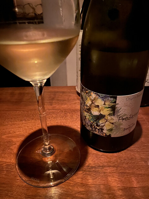 ボトルワインは予約時に「シャルドネ以外の白ワインを」とお願いしていた。こちらのご店主さんは自分が飲んだことのないワインをよく紹介してくださるのだが、この日もそうであった。ジル・ベルリオというドメーヌのシニャン。ジャケール100%。自分の無知を晒すのもどうかと思うが、ドメーヌも知らなければシニャンというAOCも知らなかったし、ジャケールという品種は(自分のワイン記録を調べたところ)過去に一度飲んだことがあるだけであり、なんとその一度というのがこちらのお店にてグラスで頂いたものであった。